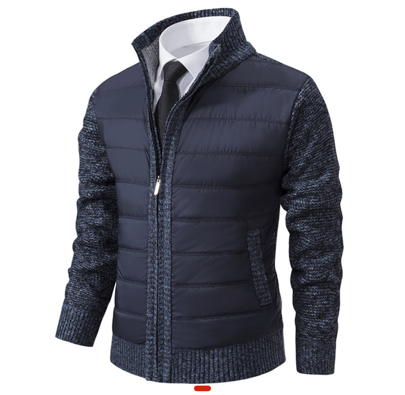 Med vattert front og strikkede detaljer gir jakken god varme og komfort, samtidig som den holder et sofistikert preg som passer godt over skjorte eller genser.