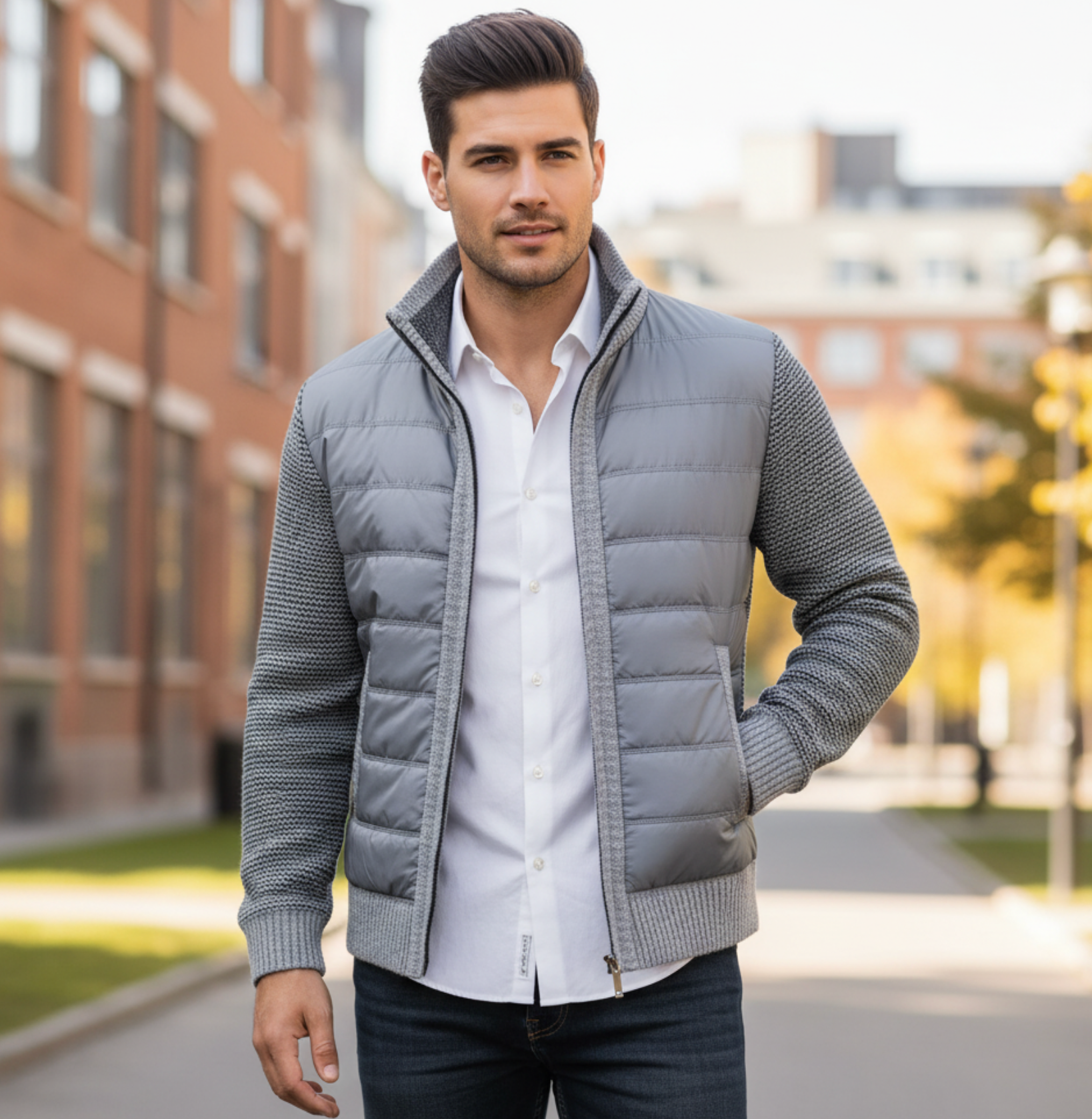 Oppgrader garderoben med denne stilrene og allsidige jakken fra Lestaro – perfekt for kjølige dager hvor komfort møter elegant design. Jakken kombinerer et moderne, vattert frontpanel med myke strikkede ermer og rygg, noe som gir både varme, bevegelighet og et sofistikert uttrykk.